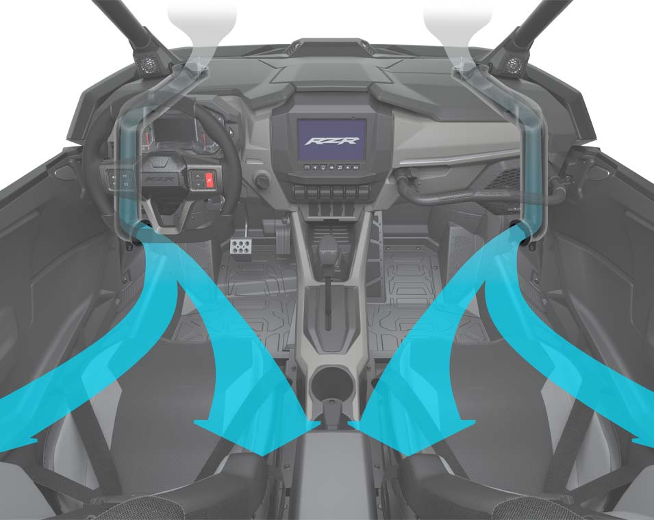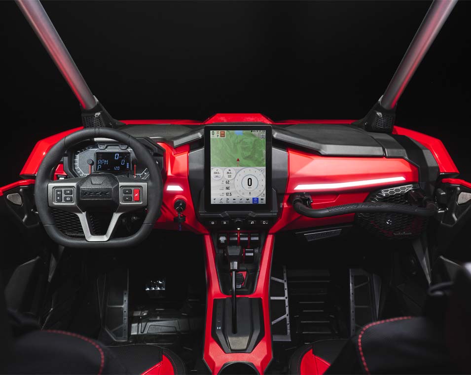 Gewinnen beginnt von innen, und der RZR Pro R ist da keine Ausnahme. Sein Interieur ist bis ins kleinste Detail auf Komfort und Bequemlichkeit ausgelegt, damit du weiter fährst, härter unterwegs bist und als Erster ins Ziel kommst.