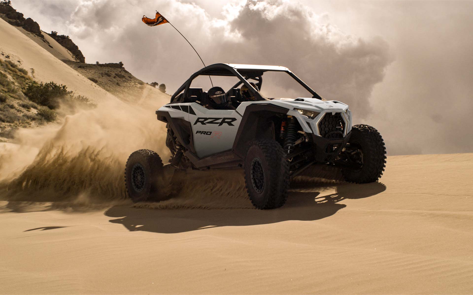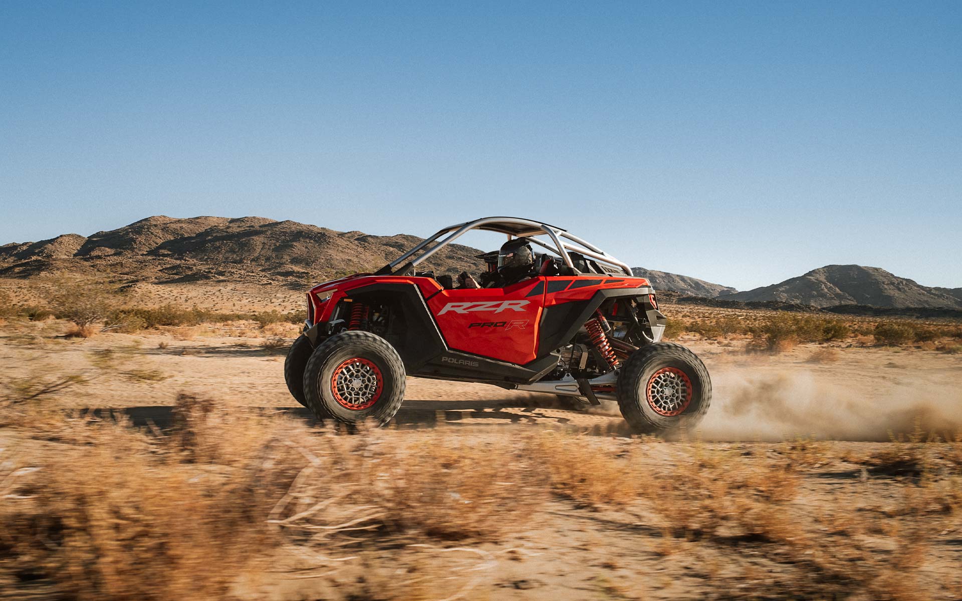 Entfessele eine Naturgewalt mit dem RZR Pro R, unserem leistungsstärksten RZR mit renn-erprobter Performance.